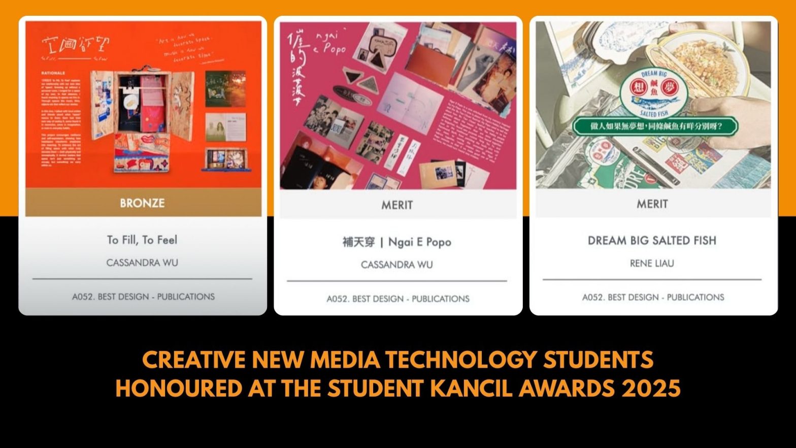 We are delighted to share that students from the Creative New Media Technology programme have been recognised at the Student Kancil Awards 2025. The awards celebrate young creatives who demonstrate sincerity, originality and dedication in their craft, which are values we hold close in our learning community.