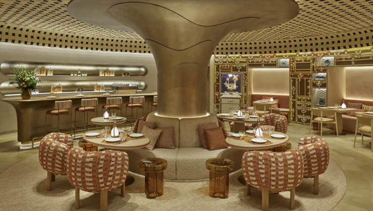 Louis Vuitton is one of these new businesses. The Place Seoul is an excellent example of modern retailtainment. Instead of being a traditional boutique, the space is a multi-level journey where people can eat, explore, watch, learn, and experience. The Café Louis Vuitton is at the center of the building. It is a sculptural, futuristic lounge that combines soft, organic design with a clear sense of luxury. This café is the building’s emotional center, where the brand’s global identity meets the cultural sophistication of Seoul’s creative scene.